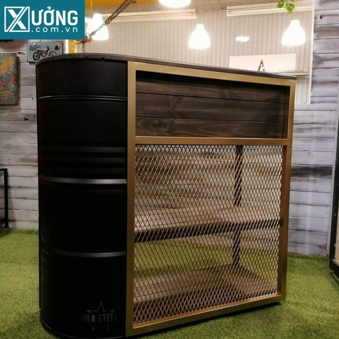 Thùng phuy được sỉ dụng để làm các mẫu quầy kệ cafe...