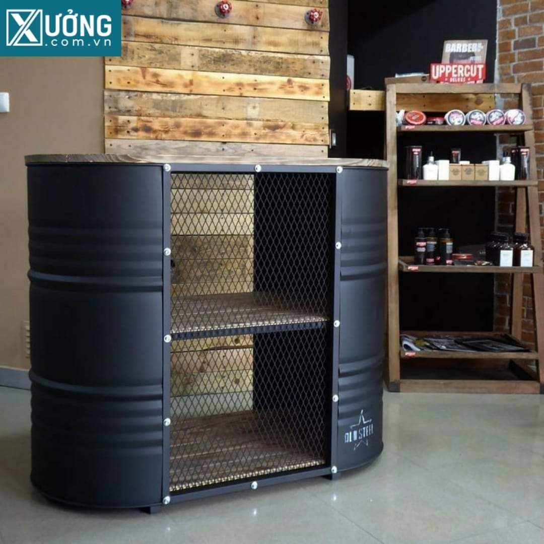 Anh chị em có nhu cầu làm bàn ghế quầy tủ kệ từ thùng phuy, vui lòng liên hệ xưởng tư vấn.